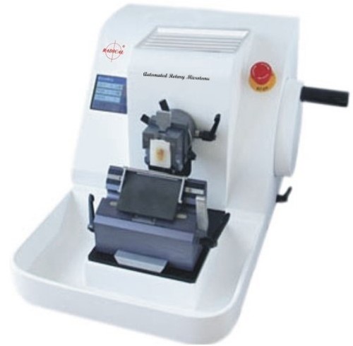 It is a universally approved, modern and reliable sectioning equipment designed for very precise sectioning of tissues upto 1 m thickness.The interior mechanism rests on heavy metal base and is covered with a full protective cover for easier cleaning and lubrication.